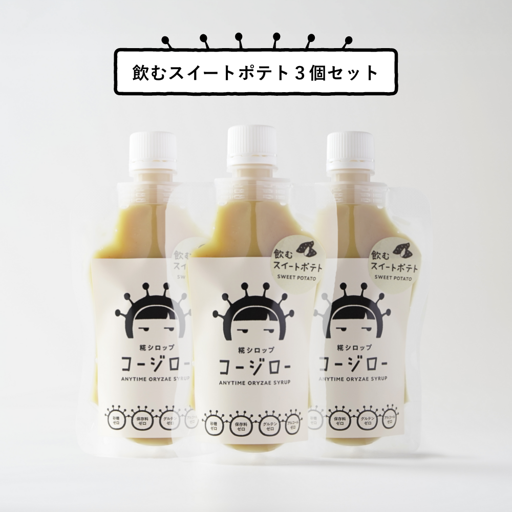 糀シロップ 飲むスイートポテトは、石川県能登産のさつまいもを、糀で丁寧に発酵させた新しい感覚のシロップです。コージローのラインナップのなかで、からだの調子を整える食物繊維をしっかり摂りたい、という方に最もおすすめしたいのが糀シロップコージロー「飲むスイートポテト」です。